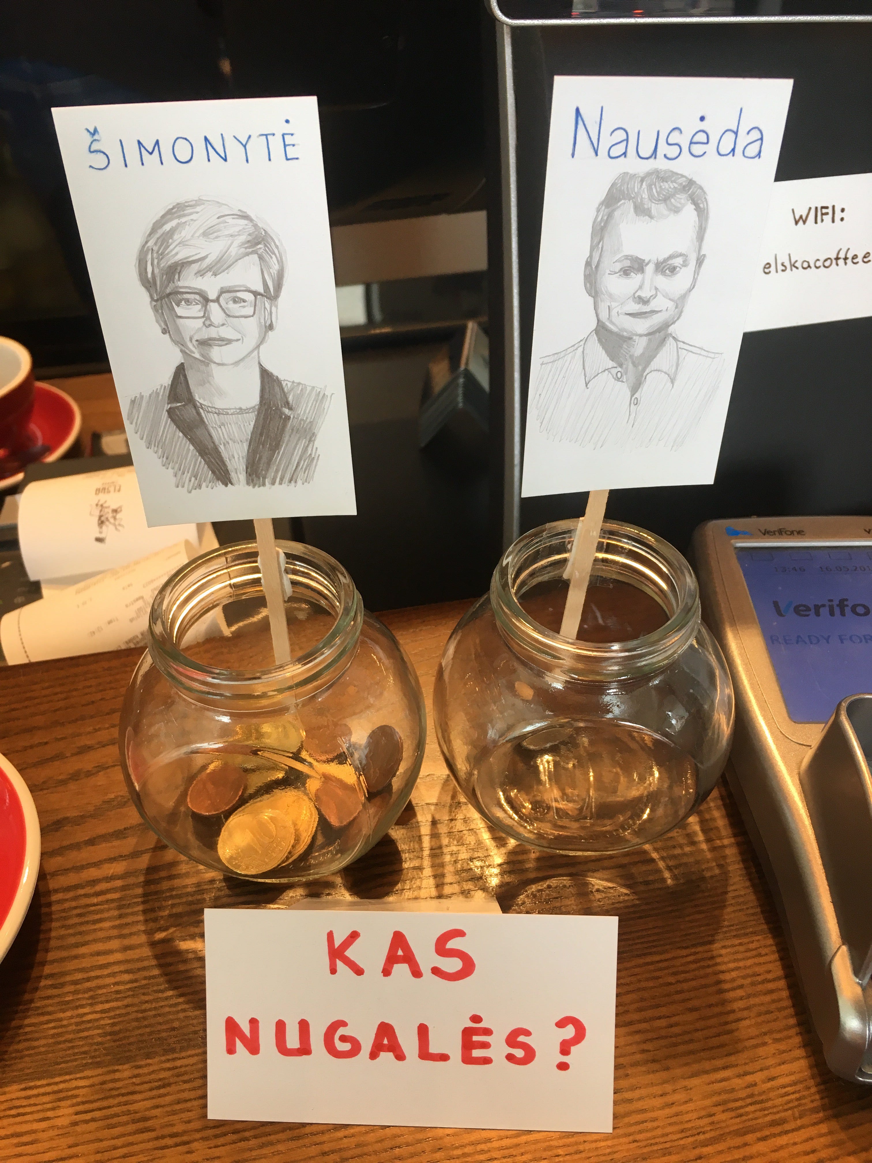 (An informal poll between the second-round candidates in a Vilnius Coffee Shop.)